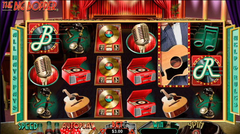 O slot Big Bopper abrange seis rolos e fornece 729 maneiras incríveis de vencer junto com funções lucrativas, incluindo os multiplicadores, as contas de pagamento e bônus. Os principais jackpots correm com 30.000 moedas.