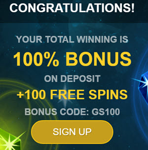 - Bônus de inscrição: с € 100, mais 100 giros de bônus