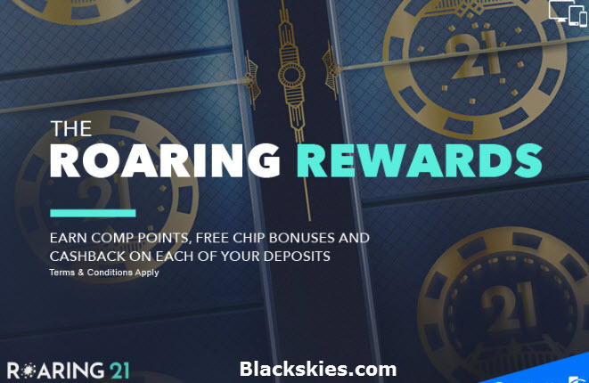 Esse bônus é aplicável a jogos de slot, jogos Keno e Scratchcard no menu Roaring 21. O Roaring 21 também oferece bônus de recarga em diariamente, semanalmente ou mensalmente, recompensa de reembolso e pontos computacionais e recompensas. (Para cada 100 pontos, um jogador recebe US € 1), depósitos extras para rolos altos, entusiastas do slot e muito mais, que são todos reivindicáveis até cinco vezes ao dia.