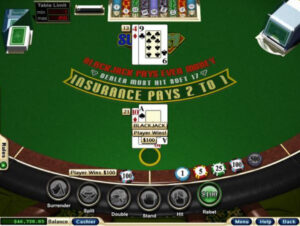 As cartas do revendedor que enfrentam e a carta do jogador tem até 16 anos. A chance é dada para ele se render, mas então ele vai fortalecer metade de sua estaca