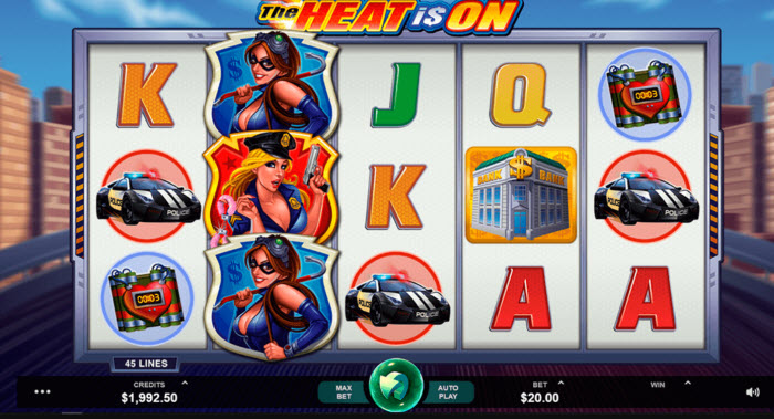 A Microgaming desenvolveu um novo slot on-line composto por cinco rodas e quarenta e cinco linhas de pagamento chamadas de calor estão ativadas. O tema do slot é sobre a polícia e contém dois ícones selvagens, além de cinco de um que dará aos jogadores duzentos multiplicar por suas apostas. Uma coisa importante digna de nota é a sessão de rotação gratuita que premiará o jogador cerca de oitenta gira livremente. Existe a possibilidade de reativar a sessão para ganhar cerca de cento e sessenta giros livremente.